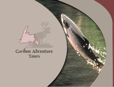 We're located in the best area for Atlantic Salmon fly fishing in the world. There are several world class salmon rivers here including the famous Gander River. You'll fish with artificial fly and fly rod for the world's strongest fighting fish. When a salmon strikes it's an unforgettable experience. Listen to your reel spin.....watch that tremendous leap......feel the strain on your fly rod! Salmon trips are available from June 22 until September 2. Equipment is supplied upon request. An introduction to fly fishing is available for the novice. Your tour host is a licensed guide and avid fly fisher. We create our own fly patterns! We will take you to our best pools.....usually in remote locations where you may also see Caribou, Moose, or Black Bear on the same trip!